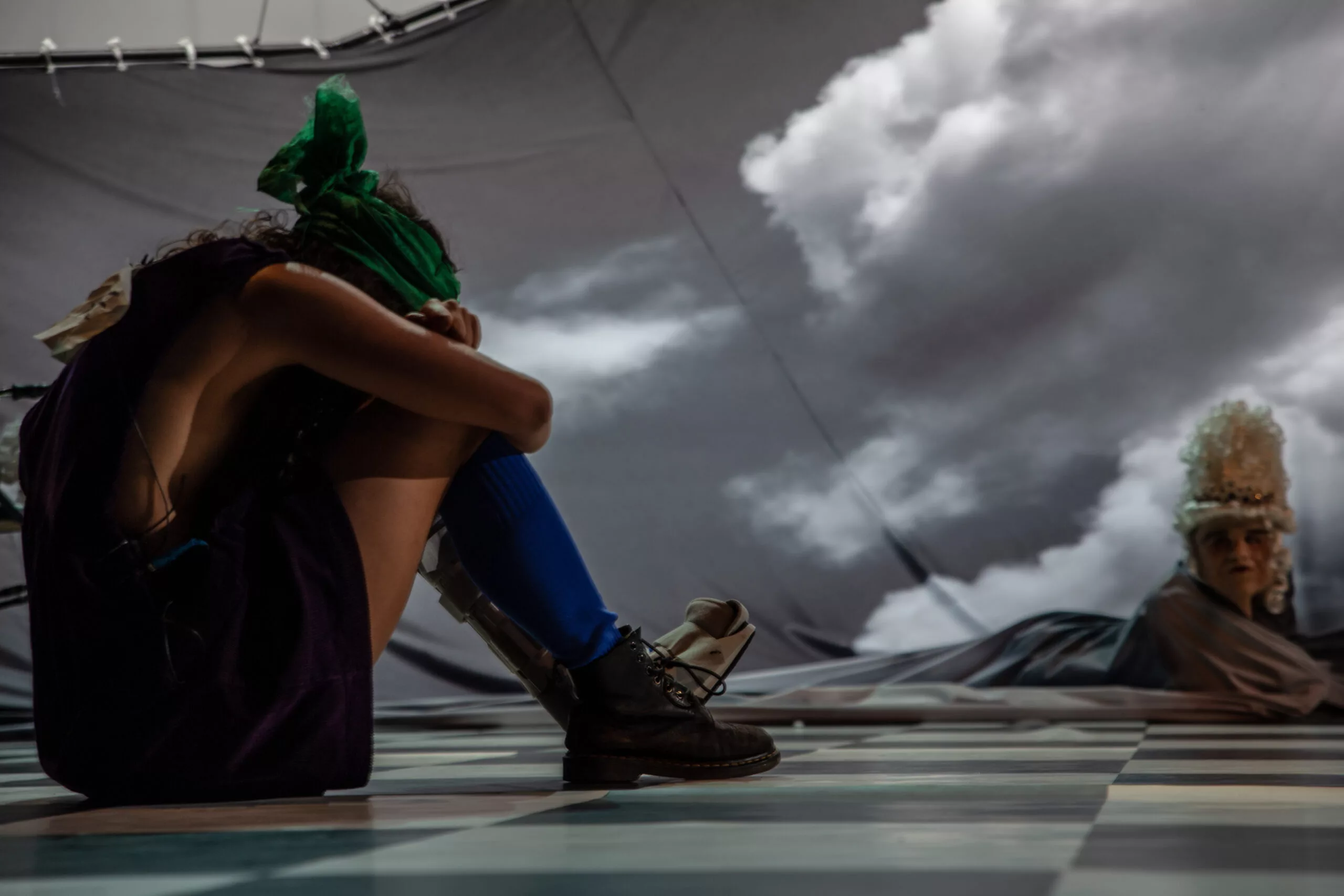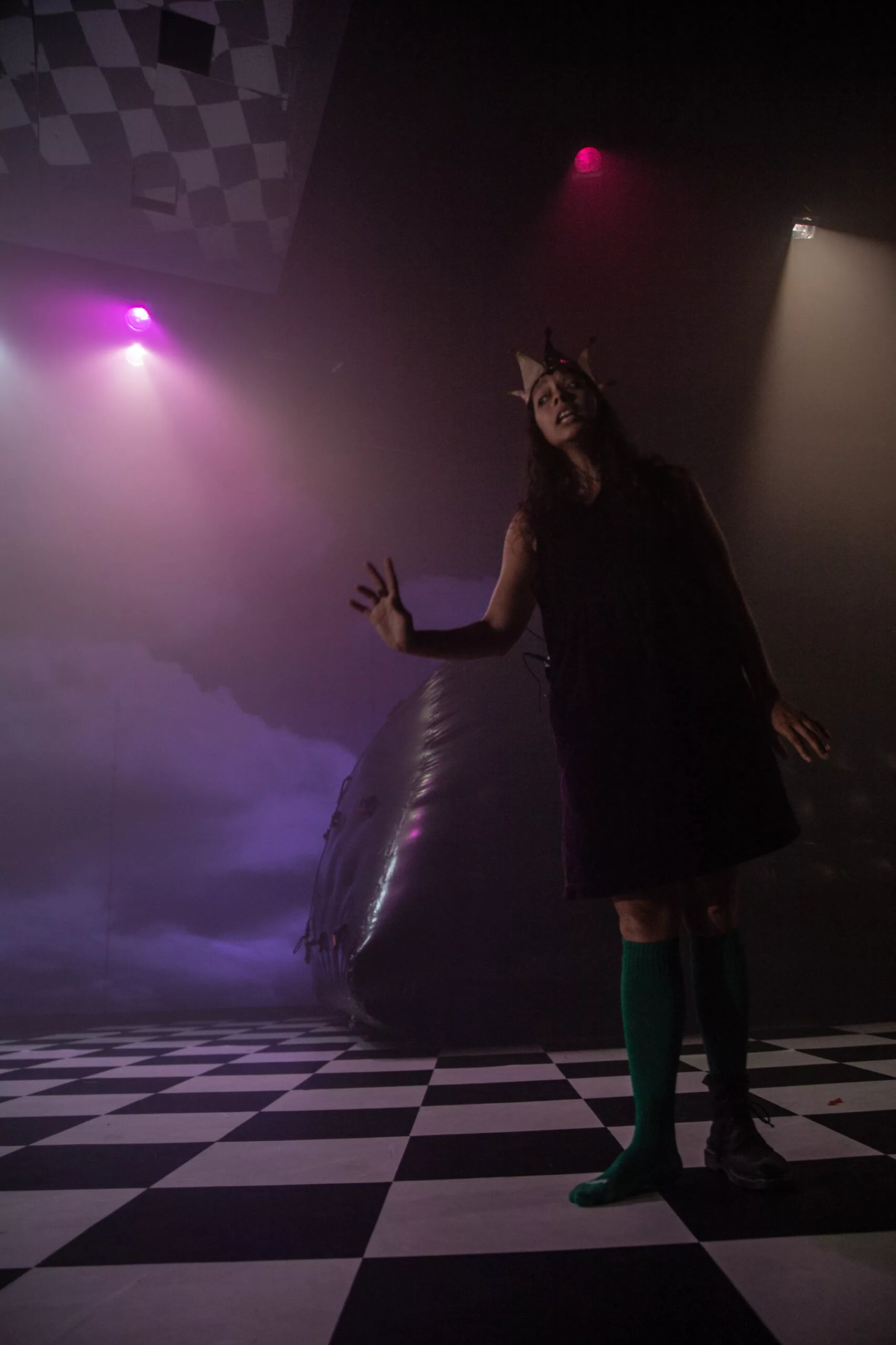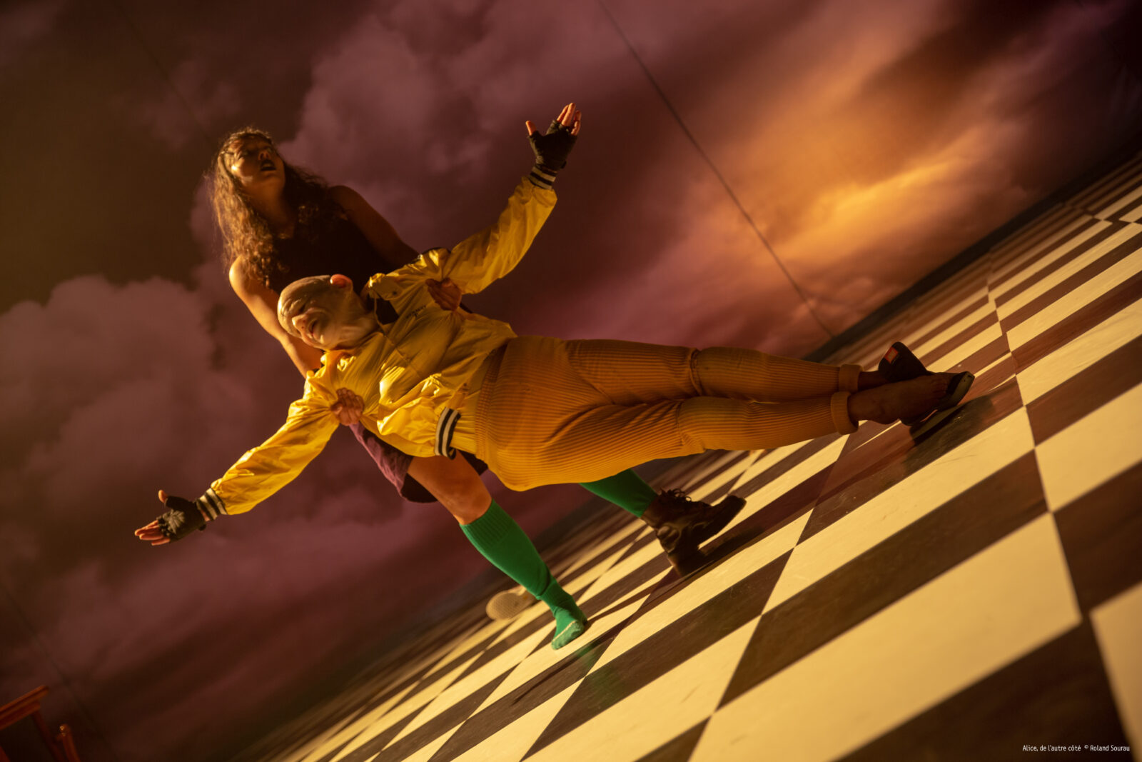 Alice de l’autre côté est un rendez-vous théâtral qui est d’abord celui de toute l’équipe artistique avec ce village particulier qu’est un EHPAD. Pour nous ce fut celui de Lanmeur (Finistère). Nous avons choisi l’immersion comme mode opératoire : il s’agissait de générer de la fiction, pour nous, mais aussi et surtout pour les résident·e·s et professionnel·le·s de l’EHPAD. C’est un personnage directement sorti du texte de Carroll qui fut « l’invité » de cette institution. En mascotte déroutante il a su contredire beaucoup de poncifs sur cet endroit qui semble déjà nous attendre…