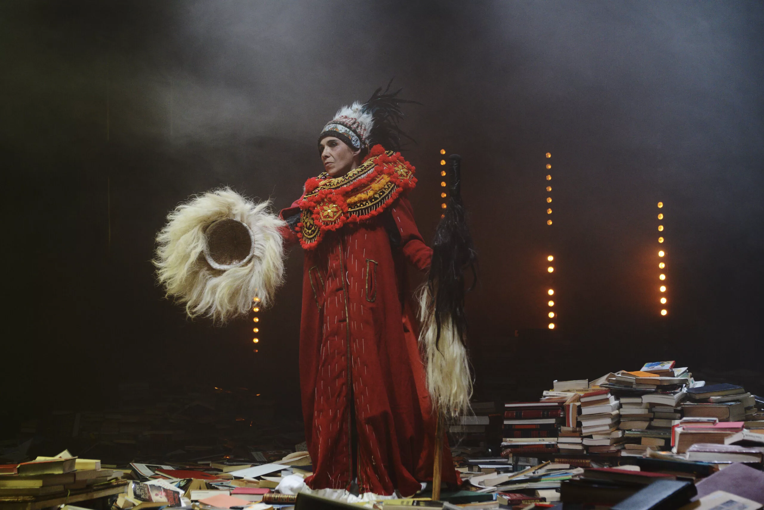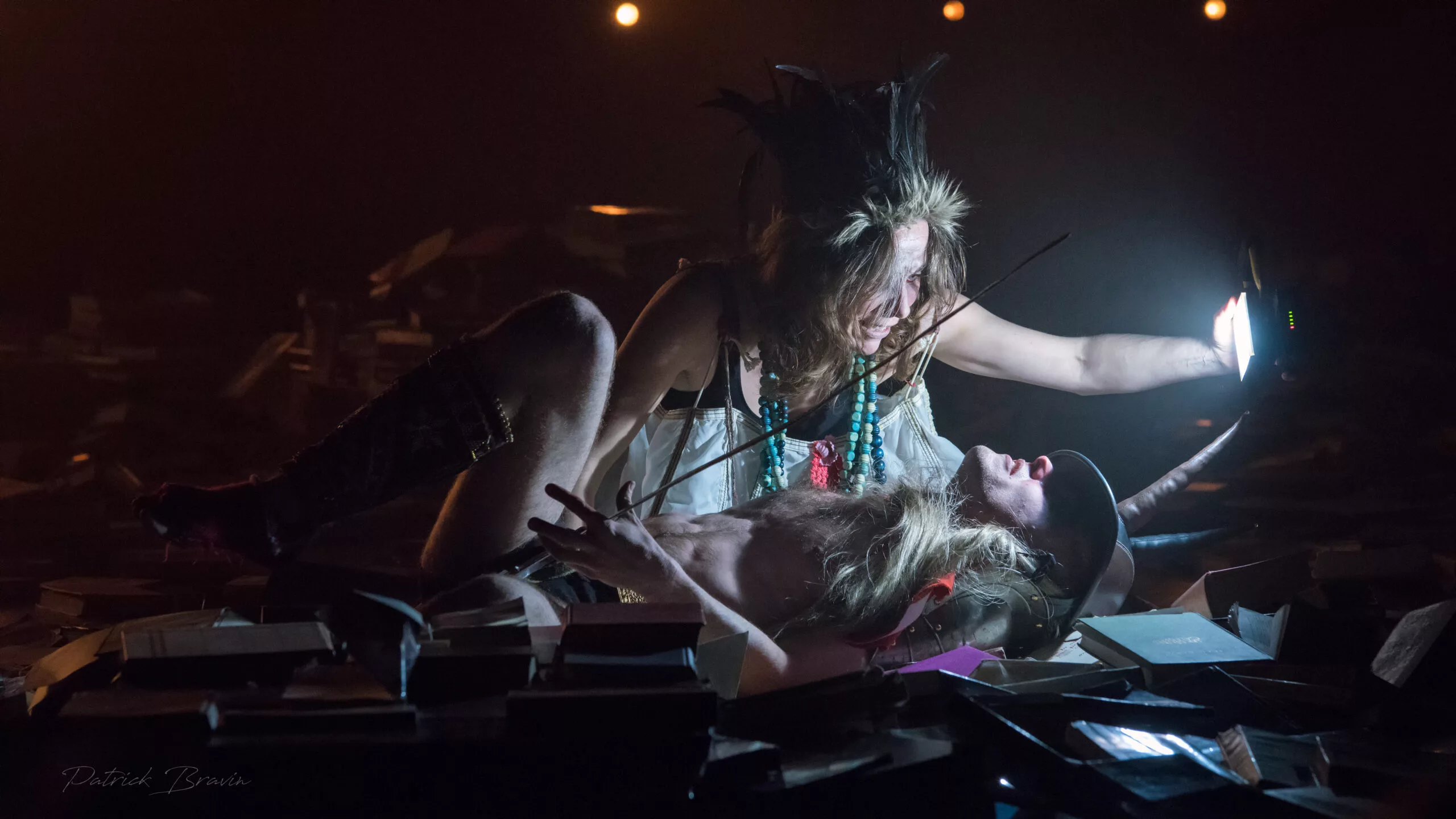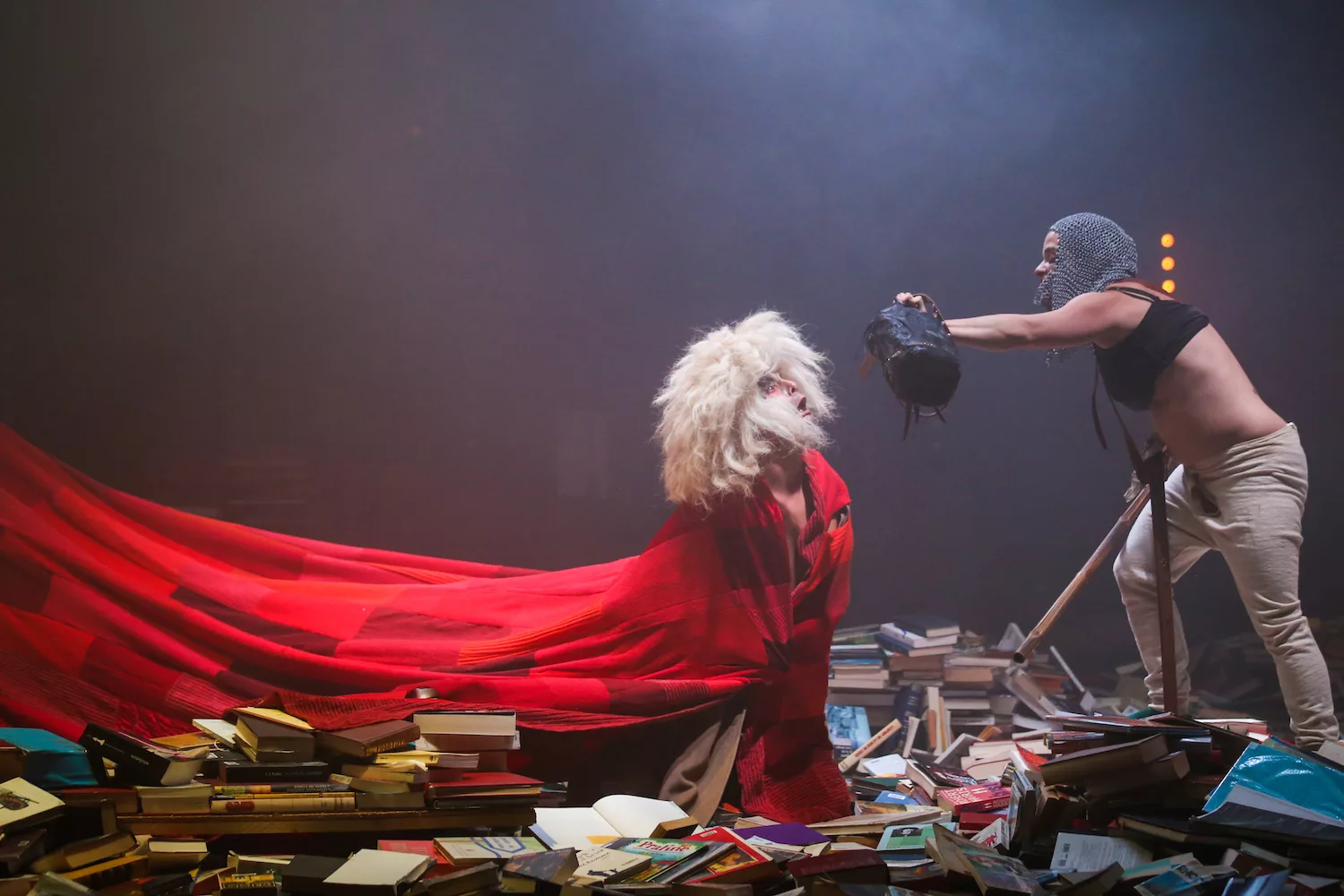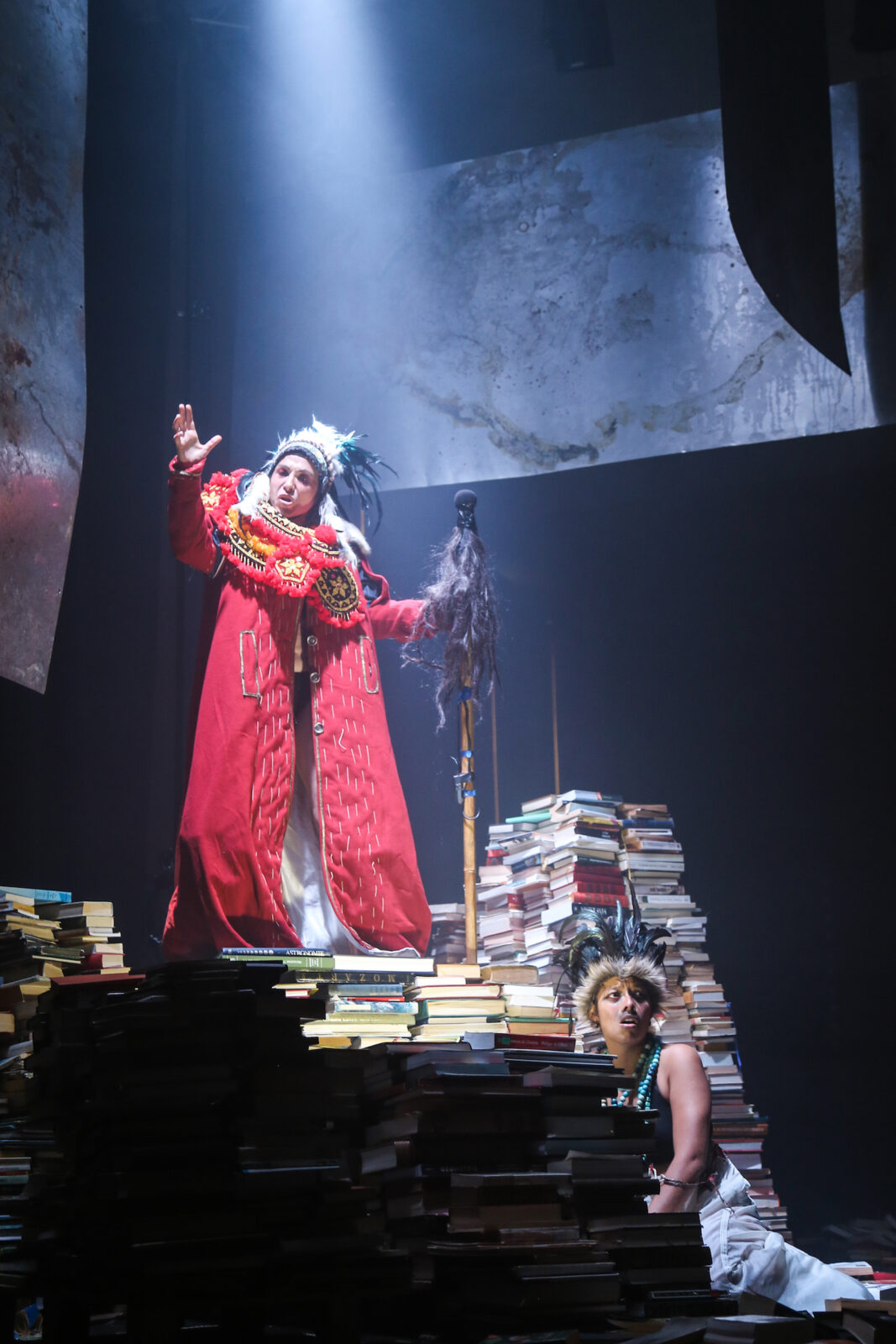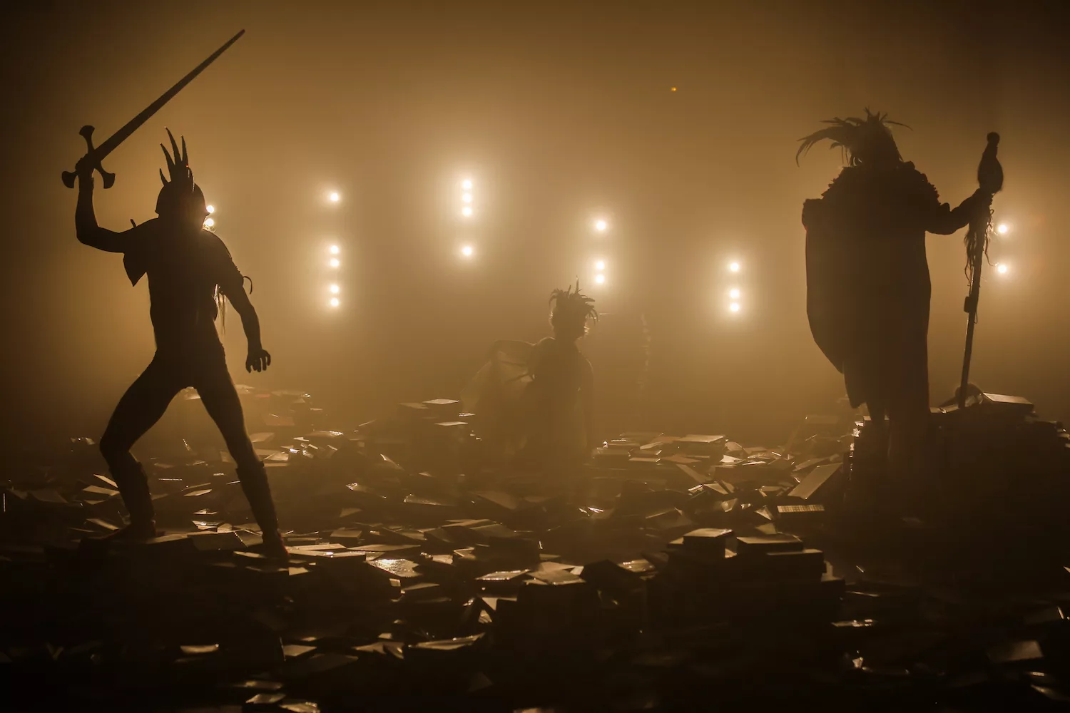 « Tempête » d’après La Tempête de Shakespeare est une adaptation nourrie par une résidence en Indonésie dirigée par Charlie Windelschmidt dans le cadre du programme de la Villa Médicis Hors Les Murs de l’ Institut Français. Cette création sous influence, débute par un prologue forain spectaculaire sur les parvis des théâtres, véritable reconstitution grandeur nature d’un naufrage. La procession des spectateurs pénètre alors dans le théâtre où le calme du politique se mêle aux affres de l’irrationnel : c’est l’île.