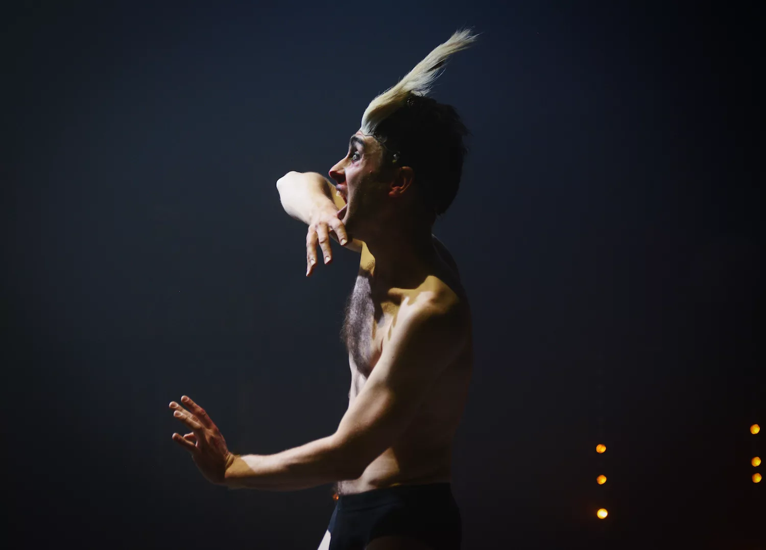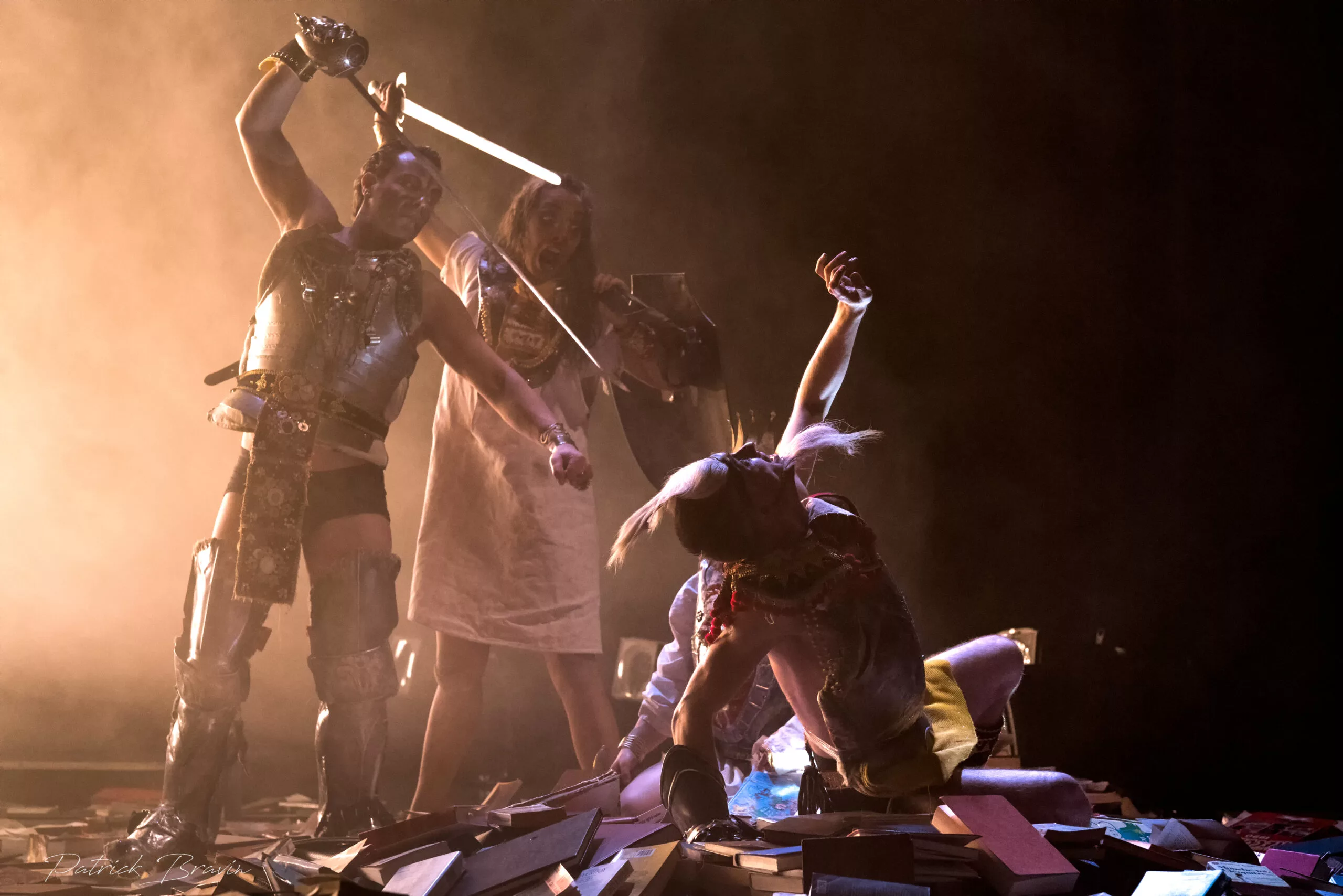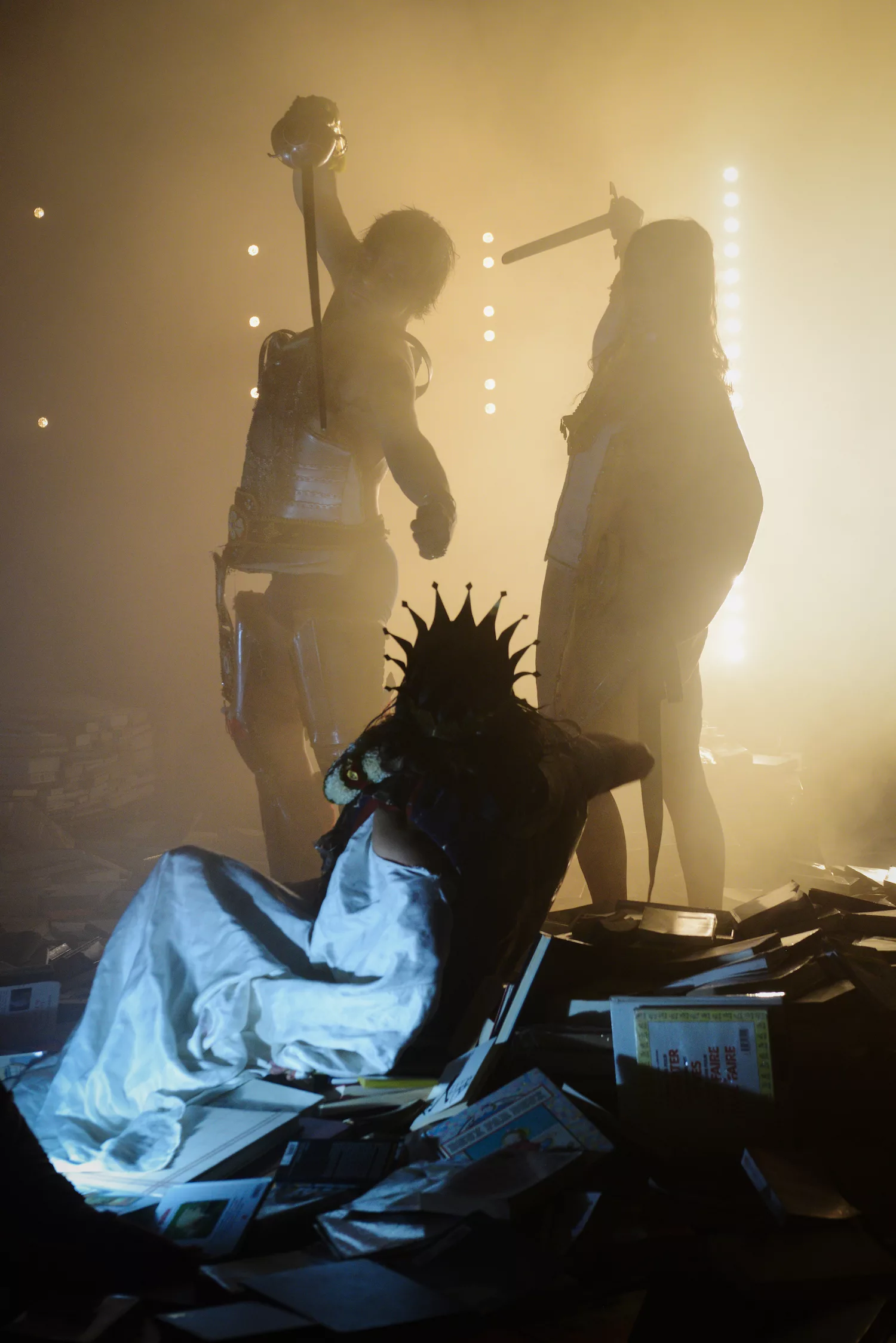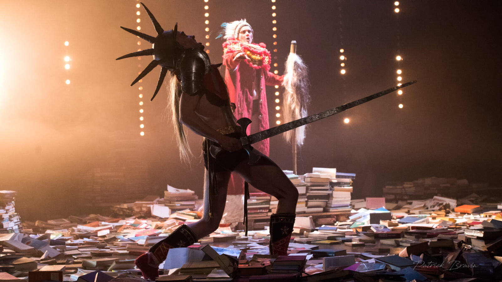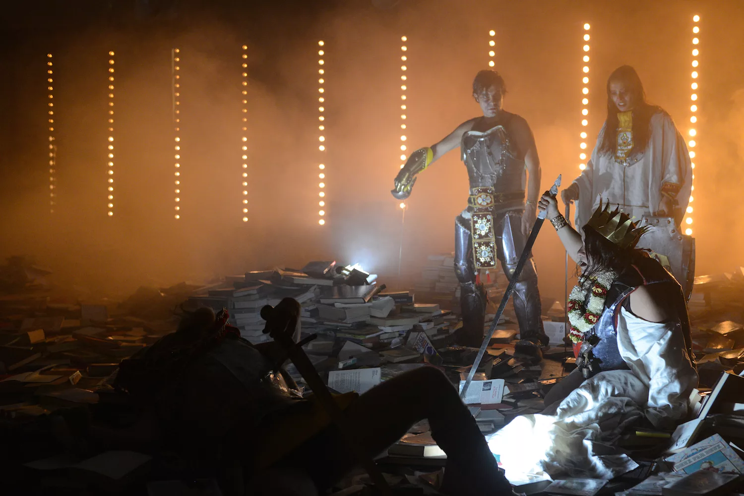 « Tempête » d’après La Tempête de Shakespeare est une adaptation nourrie par une résidence en Indonésie dirigée par Charlie Windelschmidt dans le cadre du programme de la Villa Médicis Hors Les Murs de l’ Institut Français. Cette création sous influence, débute par un prologue forain spectaculaire sur les parvis des théâtres, véritable reconstitution grandeur nature d’un naufrage. La procession des spectateurs pénètre alors dans le théâtre où le calme du politique se mêle aux affres de l’irrationnel : c’est l’île.